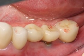 假牙完成,病患恢復健康的角質化牙齦。
