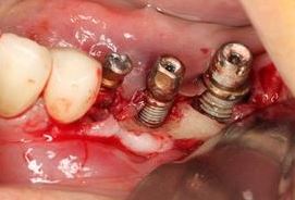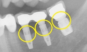 翻開牙肉,可看見植體週圍骨頭嚴重吸收。